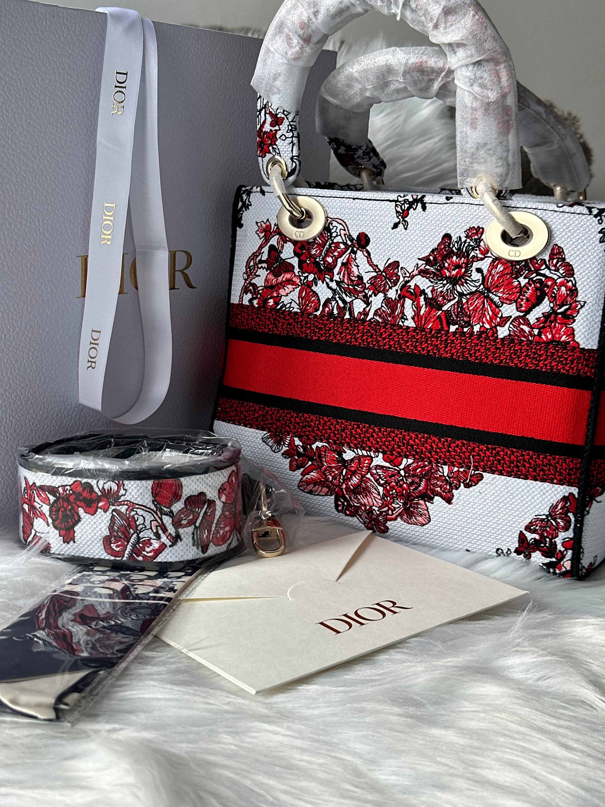 Turn everyday into a fashion statement with the Rouge Bloom. Featuring bold red floral embroidery on a crisp white canvas, this structured tote is accented with signature gold hardware and detachable strap for versatile styling. Spacious, chic, and effortlessly Parisian, it’s your perfect go-to for both casual days and elegant outings
